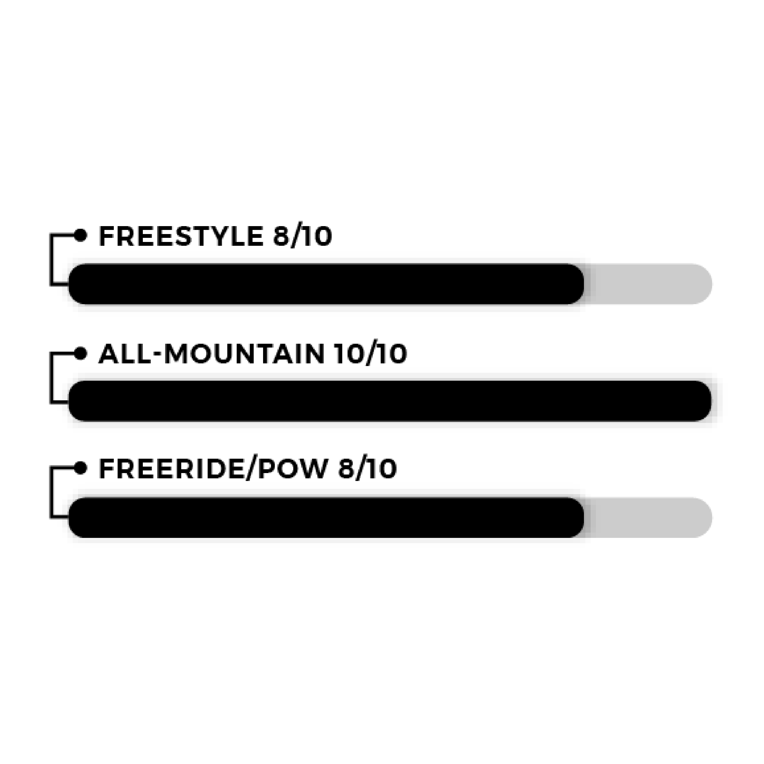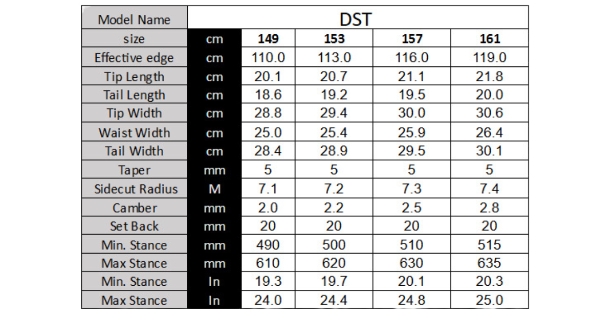 With a rockered nose and tail, mild taper, and dialed flex, the DST delivers effortless float and precise handling. No matter the terrain, this is your go-to all-mountain powerhouse.